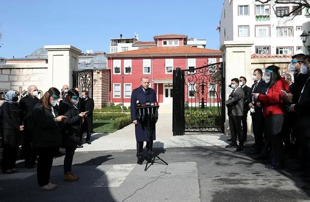 Başkan Erdoğan, bir süre telefonla görüştü. Ardından, caminin hemen karşısında bulunan Nev Mekan'da incelemelerde bulundu. Erdoğan'a AK Parti Genel Başkanvekili Numan Kurtulmuş, Cumhurbaşkanlığı sözcüsü İbrahim Kalın, İletişim Başkanı Fahrettin Altun, İstanbul Valisi Ali Yerlikaya, AK Parti İstanbul İl Başkanı Osman Nuri Kabaktepe eşlik etti.