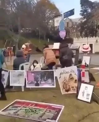 Sosyal medyada yayımlanan görüntülerde, açılan sergideki görsellerin yerleştirilmesi sırasında yerde duran ve üzerinde Kabe figürü görülen bir resim yer aldığı görülüyor. Resmin tam ortasında şahmeran figürü, dört köşesinde de LGBTİ+, lezbiyen, trans ve aseksüel paçavrası yer almıştı.