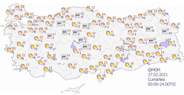 Bu haritaya iyi bakın çünkü ülkenin hemen hemen tamamında parçalı bulutlu ve açık bir havanın yaşanacağı son gün olacak. Konya ve Ankara ile civarındaki bazı illerde ise puslu bir hava hakim olacak.