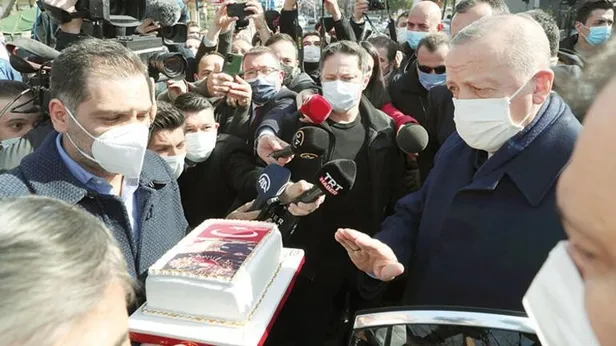 Erdoğan dün Kısıklı'daki evinden çıkarken yol üzerindeki bir pastanenin çalışanları da hazırladıkları pastayla Erdoğan'ın doğum gününü kutladı.
