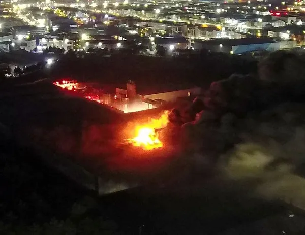 Tesiste meydana gelen yangın havadan da görüntülendi.