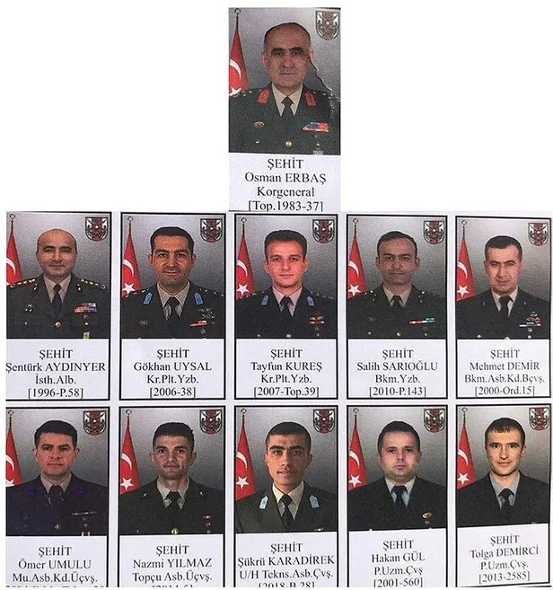Bingöl'den Tatvan'a gitmek için kalkan Kara Kuvvetleri Komutanlığı'na ait Cougar tipi helikopterin kaza kırıma uğraması sonucu şehit olan Korgeneral Osman Erbaş, Jandarma Kurmay Albay Şentürk Aydınyer, Kurmay Pilot Yüzbaşı Tayfun Kureş, Yüzbaşı Salih Sarıoğlu, Kurmay Pilot Yüzbaşı Gökhan Uysal, Astsubay Kıdemli Başçavuş Mehmet Demir, Astsubay Kıdemli Üst Çavuş Ömer Umulu, Astsubay Kıdemli Üst Çavuş Nazmi Yılmaz, Teknisyen Kıdemli Çavuş Şükrü Karadirek, Piyade Uzman Çavuş Hakan Gül ve Piyade Uzman Çavuş Tolga Demirci'nin naaşları, Elazığ'da düzenlenen törenin ardından Ankara'ya getirildi. Şehitler için Ahmet Hamdi Akseki Camii'nde düzenlenen devlet törenine Cumhurbaşkanı Recep Tayyip Erdoğan, TBMM Başkanı Mustafa Şentop, Cumhurbaşkanı Yardımcısı Fuat Oktay, CHP Genel Başkanı Kemal Kılıçdaroğlu, MHP Genel Başkanı Devlet Bahçeli, eski Başbakan Binali Yıldırım, eski TBMM Başkanı Cemil Çiçek, Adalet Bakanı Abdulhamit Gül, Aile, Çalışma ve Sosyal Hizmetler Bakanı Zehra Zümrüt Selçuk, Çevre ve Şehircilik Bakanı Murat Kurum, Dışişleri Bakanı Mevlüt Çavuşoğlu, Enerji ve Tabii Kaynaklar Bakanı Fatih Dönmez, Gençlik ve Spor Bakanı Mehmet Muharrem Kasapoğlu, Hazine ve Maliye Bakanı Lütfi Elvan, İçişleri Bakanı Süleyman Soylu, Milli Savunma Bakanı Hulusi Akar, Ulaştırma ve Altyapı Bakanı Adil Karaismailoğlu, Sanayi ve Teknoloji Bakanı Mustafa Varank, BBP Genel Başkanı Mustafa Destici, DSP Genel Başkanı Önder Aksakal, Anavatan Partisi Genel Başkanı İbrahim Çelebi, Cumhurbaşkanlığı Savunma Sanayii Başkanı Prof. Dr. İsmail Demir, Genelkurmay Başkanı Orgeneral Yaşar Güler, kuvvet komutanları, siyasi parti genel başkanları ve temsilcileri, İletişim Başkanı Fahrettin Altun, Cumhurbaşkanlığı Sözcüsü İbrahim Kalın, milletvekilleri, askeri ve sivil görevliler katıldı.