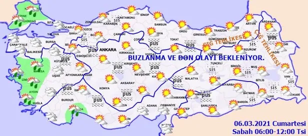 Ege Bölgesi'nde Manisa, Kütahya çevresinde yağış var. Bodrum bulutlu 17, Denizli 16, Afyon 11 derece. Pazar günü rüzgar poyraz yönünden çok sert ve soğuk eseceği tahmin ediliyor.