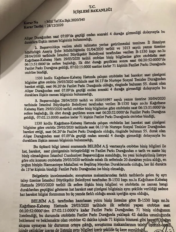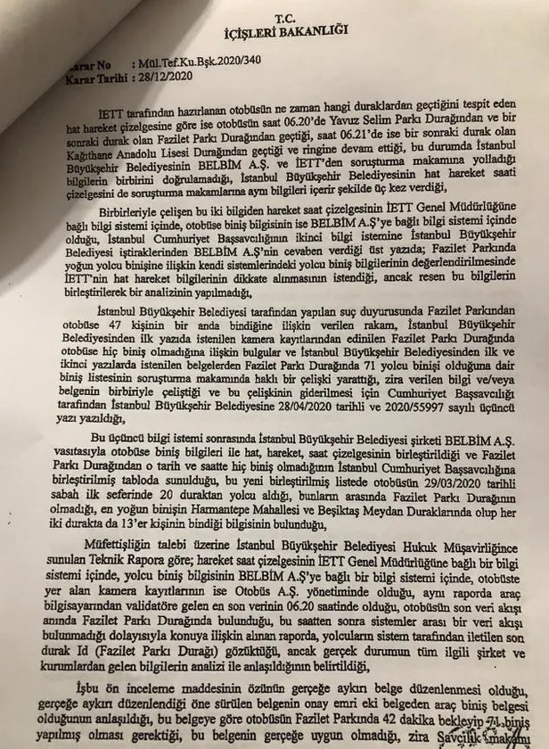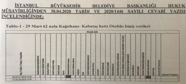 İstanbul Cumhuriyet Başsavcılığı'nın, İBB'nin suç duyurusu üzerine başlattığı soruşturmada 29 Mart 2020 Pazar günü 62 No'lu Kağıthane Kabataş hattında çalışan otobüse Fazilet durağından bir anda 47 yolcunun iddiasının gerçeği yansıtmadığını, Fazilet durağından da otobüse hiç yolcu alınmadığını tespit etti.