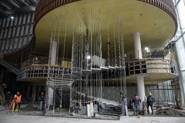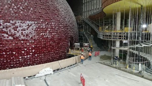 Kırmızı renkte yapılan opera salonun devamsa kubbesi tamamlandı. Salonun içinde bulunan iskelelerin söküm işlemlerine bugün başlandı. Salonun sahnesinde ise çalışmalar bütün hızıyla sürüyor.