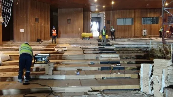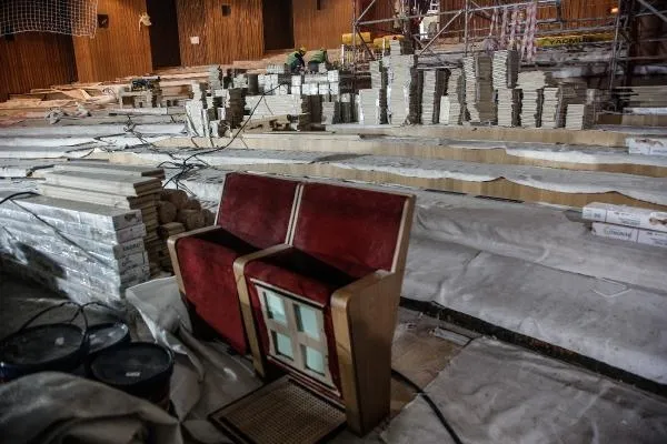 805 kişilik bir tiyatro salonu ve kubbeli opera salonunda seyirci bölümünün zemin çalışmaları tamamlandı. İki salona da koltuklar yerleştirilmeye başlandı.