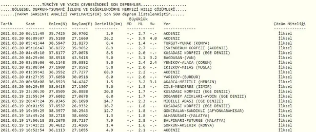 2021.03.20 06:09:07 35.5180 27.1660 26.2 -.- 3.9 4.0 AKDENIZ İlksel