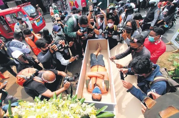 ENDONEZYA: Maske takmayı reddedenlere tabutta yatma cezası verildi. Diğer ceza ise kamuya açık tuvaletleri temizlemekti.
