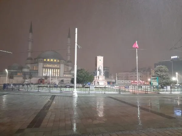 Yerli ve yabancı turistlerin ziyaret ettiği yerlerin başında gelen Taksim ve İstiklal Caddesi'nde de kar yağışı görüldü.