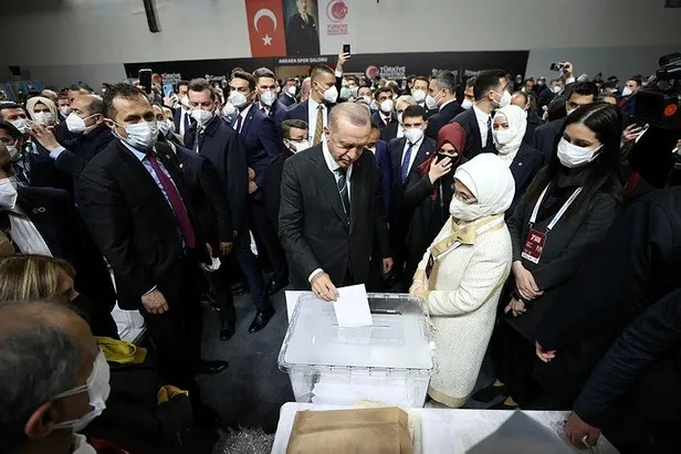 Başkan Erdoğan, 2023 manifestosunu açıklamasının ardından partisinin 7. Olağan Büyük Kongresi'nde oyunu verdi. Ankara Spor Salonu'nda düzenlenen kongrede Genel Başkanlığa tek aday olarak gösterilen Erdoğan, eşi Emine Erdoğan ile geldiği salonda, oyunu 1 No'lu sandıkta kullandı.