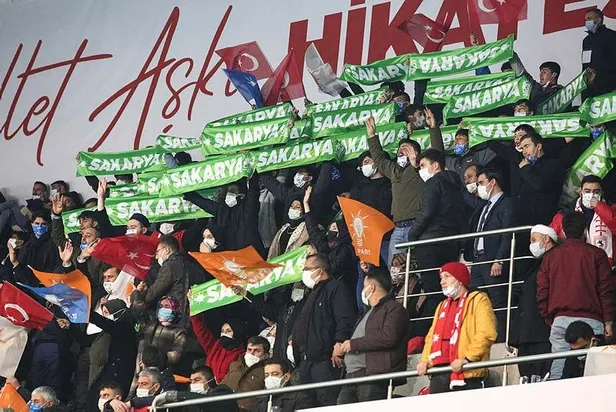 Bu tarihi dönüşümü en güzel rakamların anlattığını söyleyen Erdoğan, bu sırada tribündeki gençlerin açtığı pankartı işaret ederek, "Gençler, şimdi siz bana rakamlarla bir tablo çizdiniz, ben de hükümetlerimiz döneminde yaptığımız icraatları en özet haliyle hatırlatmak istiyorum." dedi.