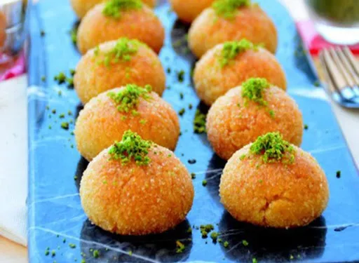 Tatlımızı şekillendirmeye geçelim. Hamurunu yuvarlarken elinizi hafif yağlayın yuvarlayıp irmiğe bulayıp tepsiye dizelim.