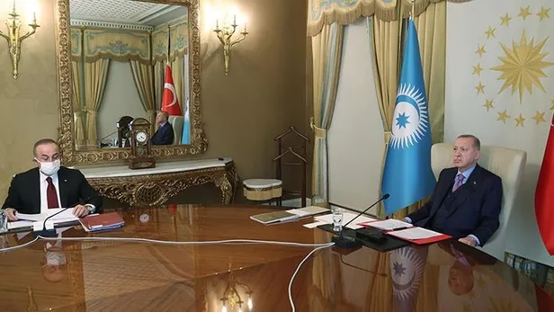 Başkan Recep Tayyip Erdoğan, Vahdettin Köşkü'nde Türk Konseyi Devlet Başkanları Zirvesi'ne canlı bağlantı ile katıldı.