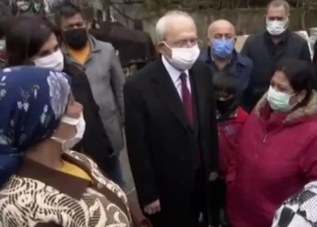 Görüntülerde Kılıçdaroğlu'nun etrafını saran kadınlardan birinin "Çekmeköy Belediyesi'nden alıyoruz ama diğer gelen kartlar bizim evlerden ayrılıyor, kesinlikle ayrılıyor. Belirli insanlar alıyor. Allah razı olsun kaymakamımızdan da memnunuz, alıyoruz" diyerek İBB'nin yardımlarda kendilerine ayrımcılık yaptığını söylediği görülüyor.