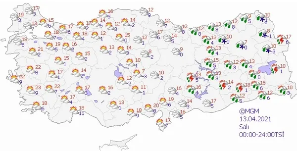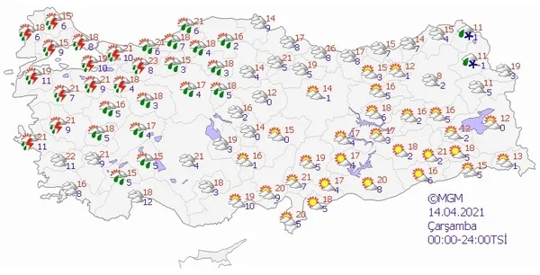 Meteoroloji tarafından yayınlanan 11 - 17 Nisan 2021 tarihli hava durumu raporuna göre ülke genelinde azalan hava sıcaklıkları hafta ortasına kadar mevsim normalleri altında seyretmeye devam edecek.