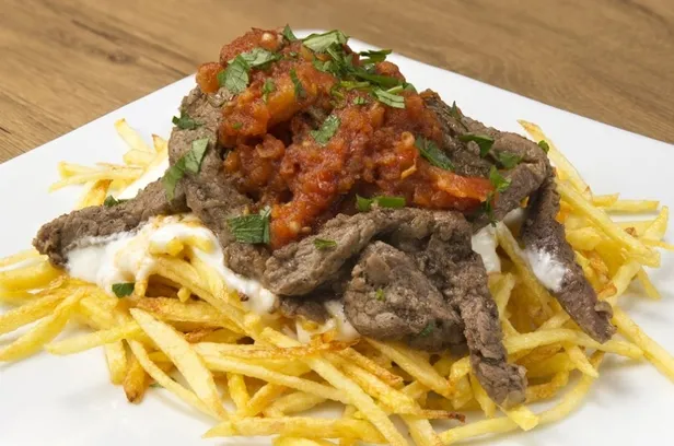 Bu sırada patatesler ince halka kesilip kibrit çöpü şeklinde doğranıp hazır edilir tuz serpilip kızgın yağda kızartılır ve büyük servis tabağına alınır.