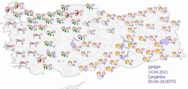 14 NİSAN 2021 ÇARŞAMBA HAVA DURUMU TAHMİNLERİ