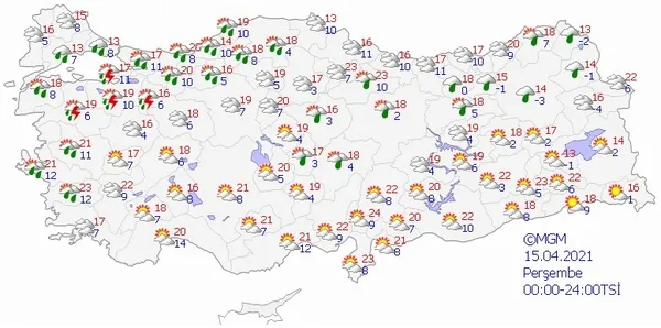 15 NİSAN 2021 PERŞEMBE HAVA DURUMU TAHMİNLERİ