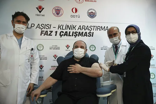 Sanayi ve Teknoloji Bakanı Mustafa Varank, dün gönüllü bir şekilde yerli aşının Faz-1 çalışmasında yer aldı.