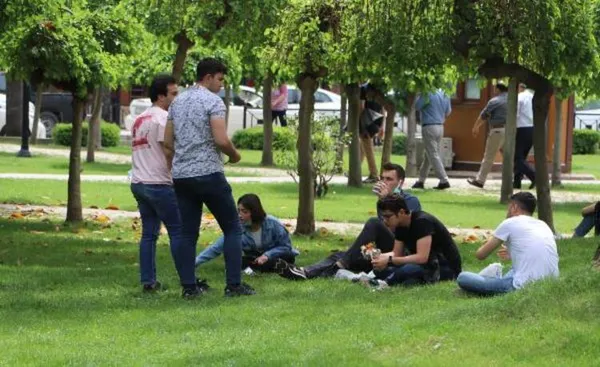 Park ve yeşil alanlara akın eden bazı Adanalılar, sıcağın da etkisiyle koronavirüs kurallarını göz ardı etti. Parkta toplu vakit geçiren birçok kişi maske takmazken, bir grup genç de kalabalık bir şekilde şarkı söyleyip eğlendi.