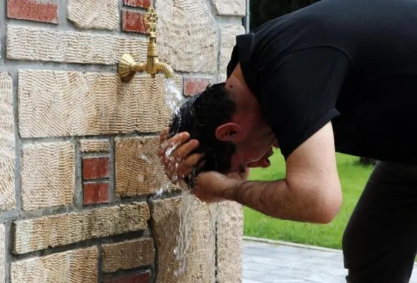 Sıcaktan bunalan bazı kişiler parkta çimlerin üzerinde yatarak bazıları ise çeşme altında başlarını yıkayarak serinlemeye çalıştı.