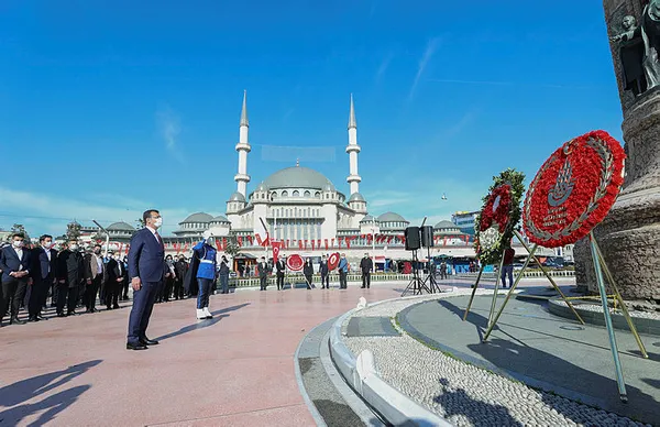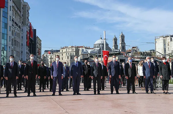 Açıklamada, "23 Nisan Ulusal Egemenlik ve Çocuk Bayramı kutlamaları kapsamında, bugün gerçekleştirilen çelenk töreni sonrasında yapılan bazı açıklamalar nedeniyle aşağıdaki hususların kamuoyuna bildirilmesi zorunluluğu doğmuştur. Bugün saat 09.00'da Beyoğlu İlçemizdeki Taksim Cumhuriyet Anıtı'nda 'Ulusal ve Resmi Bayramlar ile Mahalli Kurtuluş günleri, Atatürk Günleri ve Tarihi Günlerde Yapılacak Tören ve Kutlamalar Yönetmeliği'nin 5. maddesiyle düzenlenmiş bulunan 'Ulusal Egemenlik ve Çocuk Bayramı' törenleri dahilinde çelenk töreni icra edilmiştir" denildi.