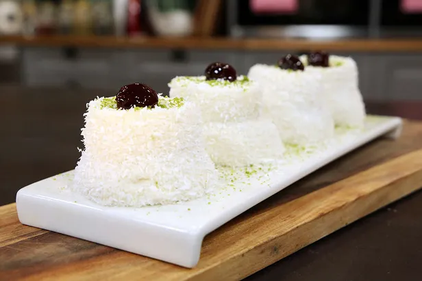 Geniş bir tabağa hindistan cevizi koyun ve bulayın her tarafını ve servis tabağına alıp dilediğiniz şekilde süsleyerek servise sunabiliriz afiyet olsun.