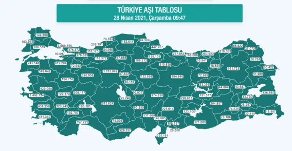Son dakika: 28 Nisan 2021 Koronavirüs aşı tablosu! Türkiye'de kaç kişi aşılandı? İstanbul, Ankara ve İzmir'de aşılanan sayısı kaç?
