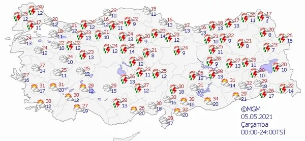 5 MAYIS 2021 ÇARŞAMBA HAVA DURUMU