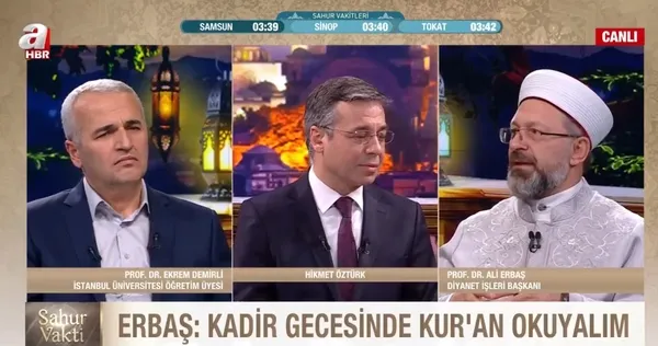 Diyanet İşleri Başkanı Ali Erbaş A Haber'de yayınlanan Sahur Vakti programına katıldı. Erbaş, canlı yayında merak edilen soruları yanıtladı.