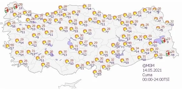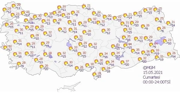 Meteoroloji Genel Müdürlüğü tarafından yapılan son değerlendirmelere göre: Ülkemizin doğu kesimlerinin parçalı ve yer yer çok bulutlu, öğle saatlerinden sonra Ağrı ve Van'ın doğusu ile Hakkari çevrelerinin yerel olmak üzere sağanak ve yer yer gök gürültülü sağanak yağışlı, diğer yerlerin az bulutlu ve açık geçeceği tahmin ediliyor.