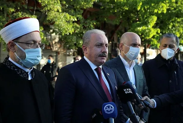 Namaz sonrası camii çıkışında açıklamalarda bulunan TBMM Başkanı Mustafa Şentop, "Allah sağlıklı, sıhhatli nice bayramlara bizleri eriştirsin. Sağlık çalışanlarımızın bayramını tebrik ediyorum, sizlerin de bayramını tebrik ediyorum. Bir süredir bayram tadında bayramları yaşayamıyoruz. Dünyayı aşağı yukarı bir salgın tehdidi kasıp kavuruyor. Bu sebeple kısıtlamalar altındayız, yine bir kapanma dönemi içerisinde Ramazan Bayramını idrak ediyoruz. Sevdiklerimizle kucaklaşamıyoruz, bayramlaşamıyoruz. Arzu ediyoruz ve dua ediyoruz ki bu şekilde son bayramımız olsun. İnşallah önümüzdeki kurban bayramına daha önce olduğu gibi sevdiklerimizle, ailemizle, komşularımızla bir arada oluruz. Öte yandan dünyanın birçok yerinde din kardeşlerimiz sıkıntı altında, zulüm altında. Yaşıyorlar ve bayrama o şekilde giriyorlar. Bütün coğrafyalarda, dünyanın her yerinde mazlum, mağdur durumdaki din kardeşlerimizin de bayramını tebrik ediyorum''dedi.