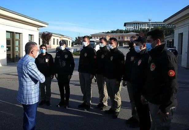 Soylu ile beraberindekiler, yeni tip koronavirüs (Kovid-19) tedbirleri kapsamında sosyal mesafe kurallarına uyarak askerlerle bayram namazı kıldı, bayramlarını kutladı.
