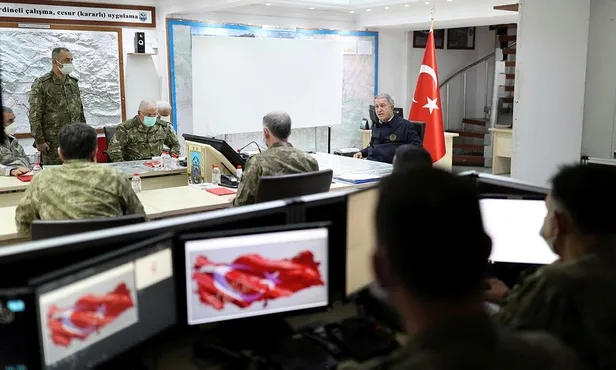 Akar, beraberindeki TSK komuta kademesi ile iftarın ardından Şırnak'a geçti. Irak'ın kuzeyindeki Metina ve Avaşin- Basyan bölgelerinde eş zamanlı olarak başlatılan Pençe- Şimşek ve Pençe- Yıldırım operasyonlarından, Pençe- Şimşek'in sevk ve idare edildiği 23'üncü Piyade Tümen Komutanlığı'nın harekat merkezine gelen Akar, burada sahadaki son duruma ilişkin bilgi aldı, talimatlar verdi. Operasyonların Irak başta olmak üzere tüm komşuların toprak bütünlüğüne, sınırlarının güvenliği ve egemenliğine saygılı şekilde gerçekleştirildiğini vurgulayan Akar, "Bize uzun yıllardır zarar veren, asil milletimizin güvenliğini tehdit eden teröristlerden bahsediyoruz. Operasyonlarımız en son terörist etkisiz hale getirilinceye kadar devam edecek. Bunun için çalışıyoruz. Bunun dışında bizim başka bir amacımız yok" diye konuştu.