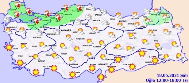 Yapılan uyarıda, "Bugün öğle saatlerinden sonra Marmara'nın doğusunda (İstanbul, Sakarya, Kocaeli ile Tekirdağ ve Kırklareli'nin doğu kesimleri), zamanla Batı Karadeniz'de (Bolu, Düzce, Karabük, Kastamonu ve Sinop) kısa süreli ve yerel olarak kuvvetli sağanak ve gök gürültülü sağanak yağış beklendiğinden su baskını, yıldırım, yerel dolu yağışı, yağış anında kuvvetli rüzgar ve ulaşımda aksamalara karşı dikkatli ve tedbirli olunmalıdır" denildi.