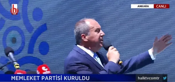 CHP’den ayrılarak Memleket Partisi’ni kuran Muharrem İnce, yol haritasını açıkladı. İnce, açıklamasında şu ana kadar 10 seçim kaybeden CHP’yi topa tuttu. İnce’nin açıklamalarını canlı veren Halk TV ise anında yayını kesti.