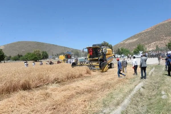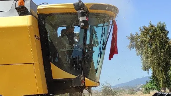 Bakan Pakdemirli, konuşmasının ardından biçerdöverle hasat yaptı.