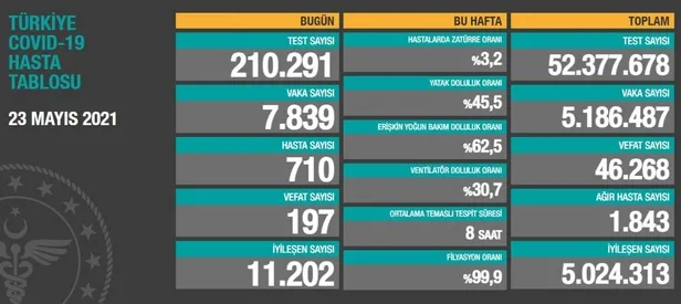 Sağlık Bakanlığı 25 Mayıs 2021 koronavirüs vaka ve vefat sayılarını içeren son Kovid-19 tablosunu paylaştı.