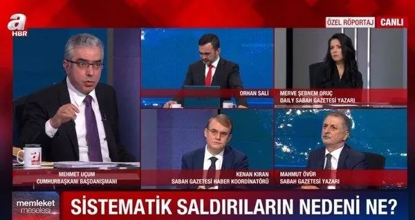 Başkan Recep Tayyip Erdoğan'ın Başdanışmanı Mehmet Uçum, A Haber ekranlarında yayınlanan Memleket Meselesi programına konuk oldu. Uçum, Sabah Gazetesi Haber Koordinatörü Kenan Kıran, Sabah Gazetesi Yazarı Mahmut Övür, Daily Sabah Gazetesi Yazarı Merve Şebnem Oruç'un sorularını yanıtladı. İşte Mehmet Uçum'un katıldığı programdaki satır başları.