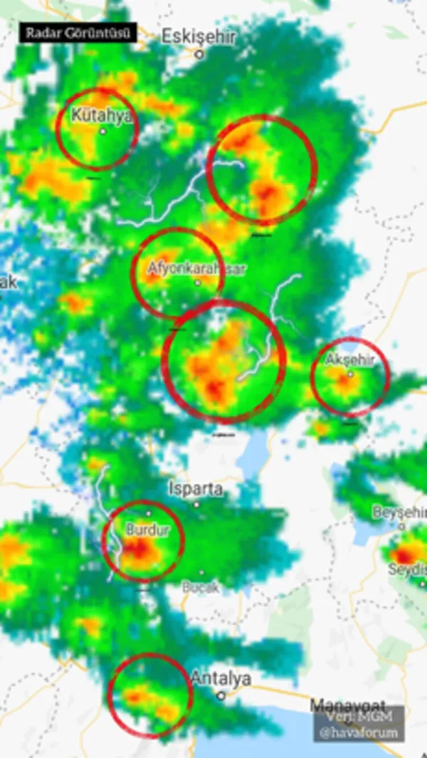 Anadolu'da radar görüntüsü mayın tarlasına döndü. Birçok noktada ani sağanak yağmur, şimşek, yıldırımın yanında sert dolu hadiseleri oluşabilir. Aşağıdaki haritada kırmızı renkli yerlerde ve çevrelerinde yer alanlar dikkatli olsun.