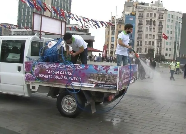 Taksim Camii açılışı öncesi son hazırlıklar! 25 ton gül suyu serpiştirildi