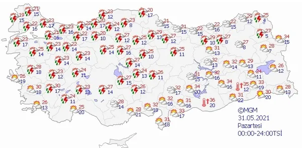 31 MAYIS 2021 PAZARTESİ HAVA DURUMU