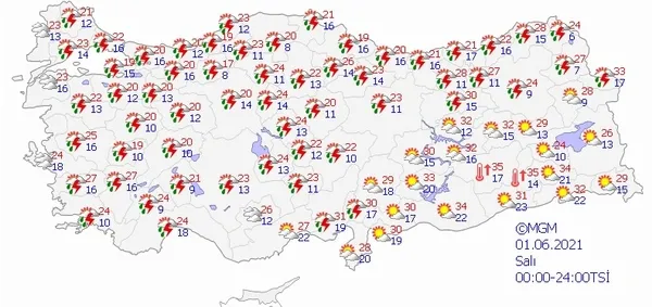 1 HAZİRAN 2021 SALI HAVA DURUMU