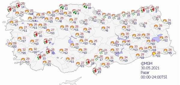 30 MAYIS 2021 PAZAR HAVA DURUMU