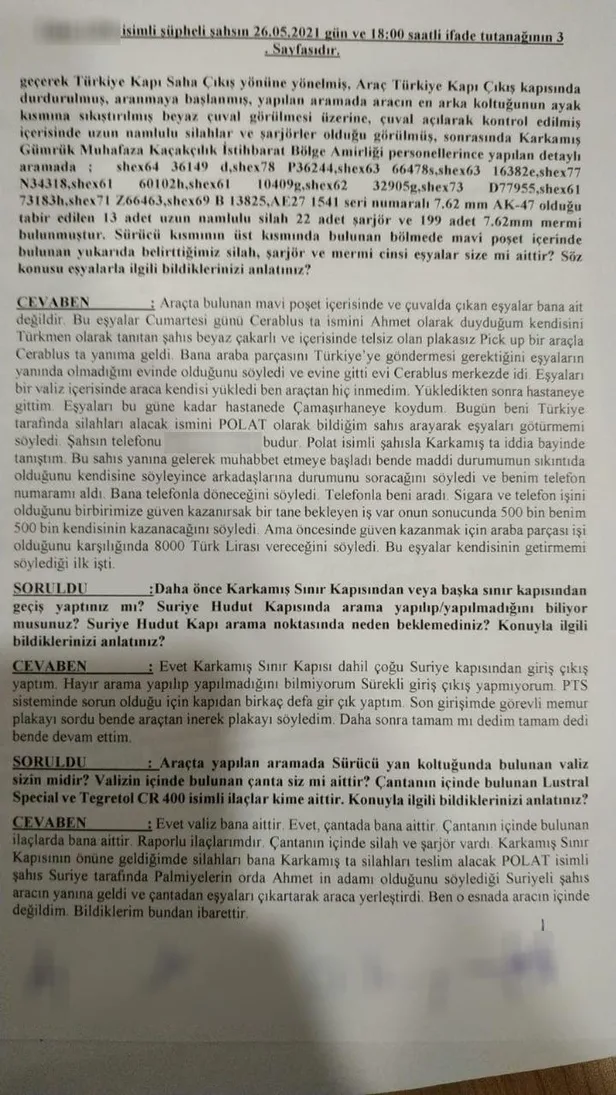 Çok sayıda şarjör ve merminin de ele geçirildiği operasyonda gözaltına alınan minibüs şoförü T.G., taşıma işlemini "Polat" diye bildiği kişinin isteği doğrultusunda 8 bin lira karşılığında yaptığını anlattı.