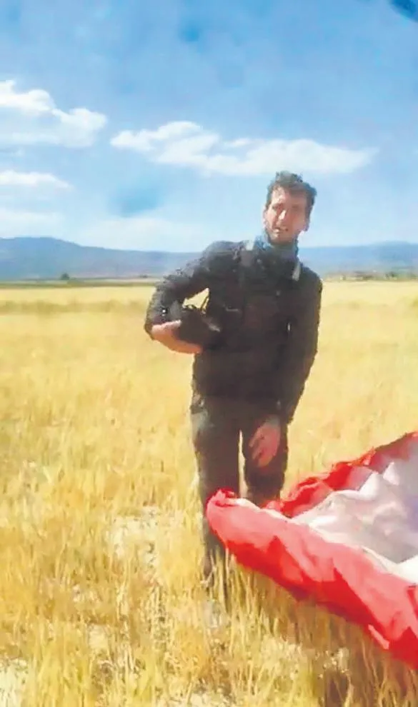 Kanadalı paraşütçü, Denizli'nin Çameli Yaylacık Dağı'ndan atladı! Burdur'un Yassıgüme köyünde Kazım Öz'e ait arpa ekili tarlaya acil iniş yaptı. Karşısında bir anda paraşütçüyü gören Öz, neye uğradığını şaşırttı.