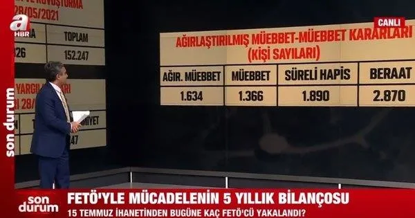 Şu ana kadar soruşturma ve kovuşturma açılan kişi sayısı da açıklandı. 109 bin 421 kişi hakkında soruşturma, 42 bin 826 kişi hakkında kovuşturma dosyası açıldı. Toplam rakam ise 152 bin 247.