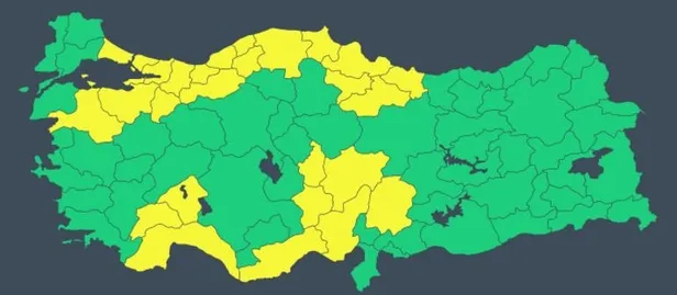 Meteoroloji Genel Müdürlüğü tarafından İstanbul’a yönelik verilen sarı alarm uyarısı gece boyu etkili olan yağmurda kendini gösterdi. Şehrin bir çok noktasında sağanak yağış etkili oldu. Öte yandan Meteoroloji Genel Müdürlüğünden yapılan son değerlendirmelere göre, Marmara, Ege, Batı Akdeniz, Karaman dışında İç Anadolu, Karadeniz, Ardahan, Adana, Osmaniye, Kahramanmaraş, Mersin'in iç kesimleri ve Hatay'ın kıyı kesimlerinin yerel olmak üzere aralıklı sağanak ve yer yer gök gürültülü sağanak yağışlı geçeceği tahmin ediliyor. Kuvvetli yağışın İstanbul'da bugün de devam etmesi bekleniyor. İşte il il hava durumu raporu.