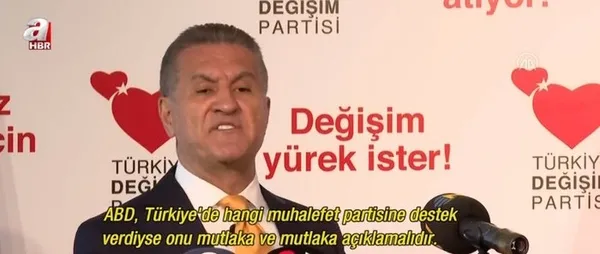 Türkiye Değişim Partisi Genel Başkanı Mustafa Sarıgül, "Muhalefetin ABD'den maddi destek" aldığını öne sürdü, ABD'ye "kime destek veriyorsanız" açıklayın diye çağrısında bulundu.