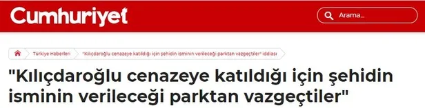 CHP yanlısı haberleriyle bilinen Cumhuriyet gibi bazı yayın organları, "Kılıçdaroğlu cenazeye katıldığı için şehidin isminin verileceği parktan vazgeçtiler" iddiasını gündeme taşıdı.